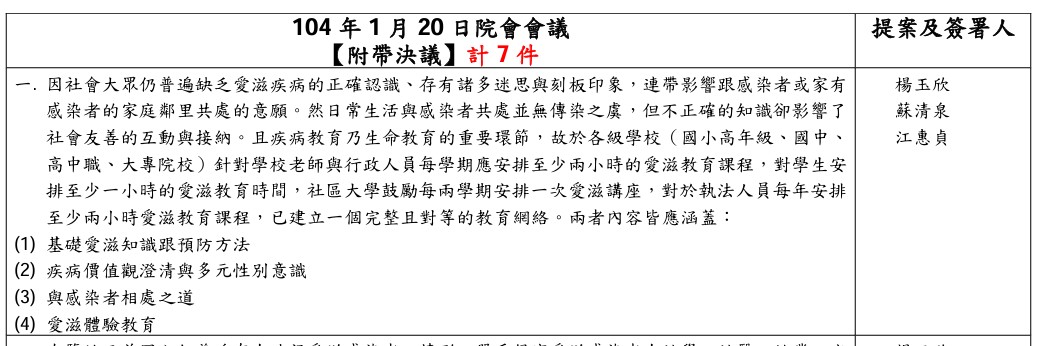 依據104.1.20院會會議附帶決議,各級學校針對學校教師及行政人員每學期應安排愛滋相關課程至少2小時 ,敬請教師知悉參閱。